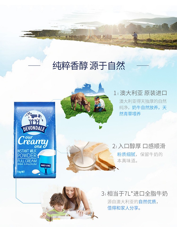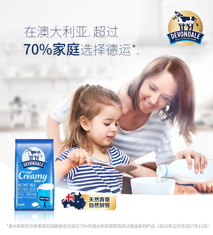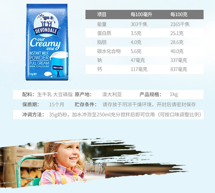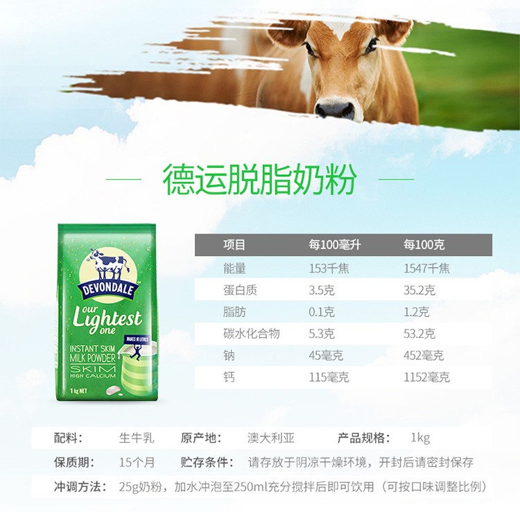 Devondale light milk powder 1kg 德运脱脂奶粉(3袋)
